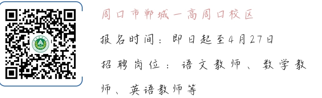 近期,周口郸城县第二高级中学、郑州嵩阳中学、驻马店西平县杨庄高级中学、漯河市许慎高级中学、周口师范学院、周口颍河高级中学、周口市郸城一高周口校区、赛轮集团、华润电力、中建八局等单位发布了最新校园招聘信息。以下为本期招聘信息: