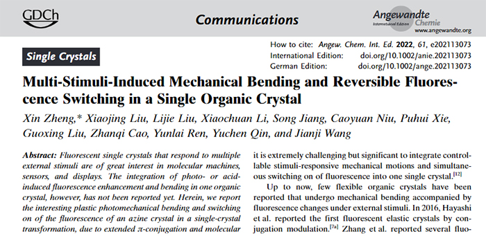 研究成果以“Multi-Stimuli-Induced Mechanical Bending and Reversible Fluorescence Switching in a Single Organic Crystal”为题,发表在国际化学著名期刊《Angewandte Chemie International Edition》上。起点中文网