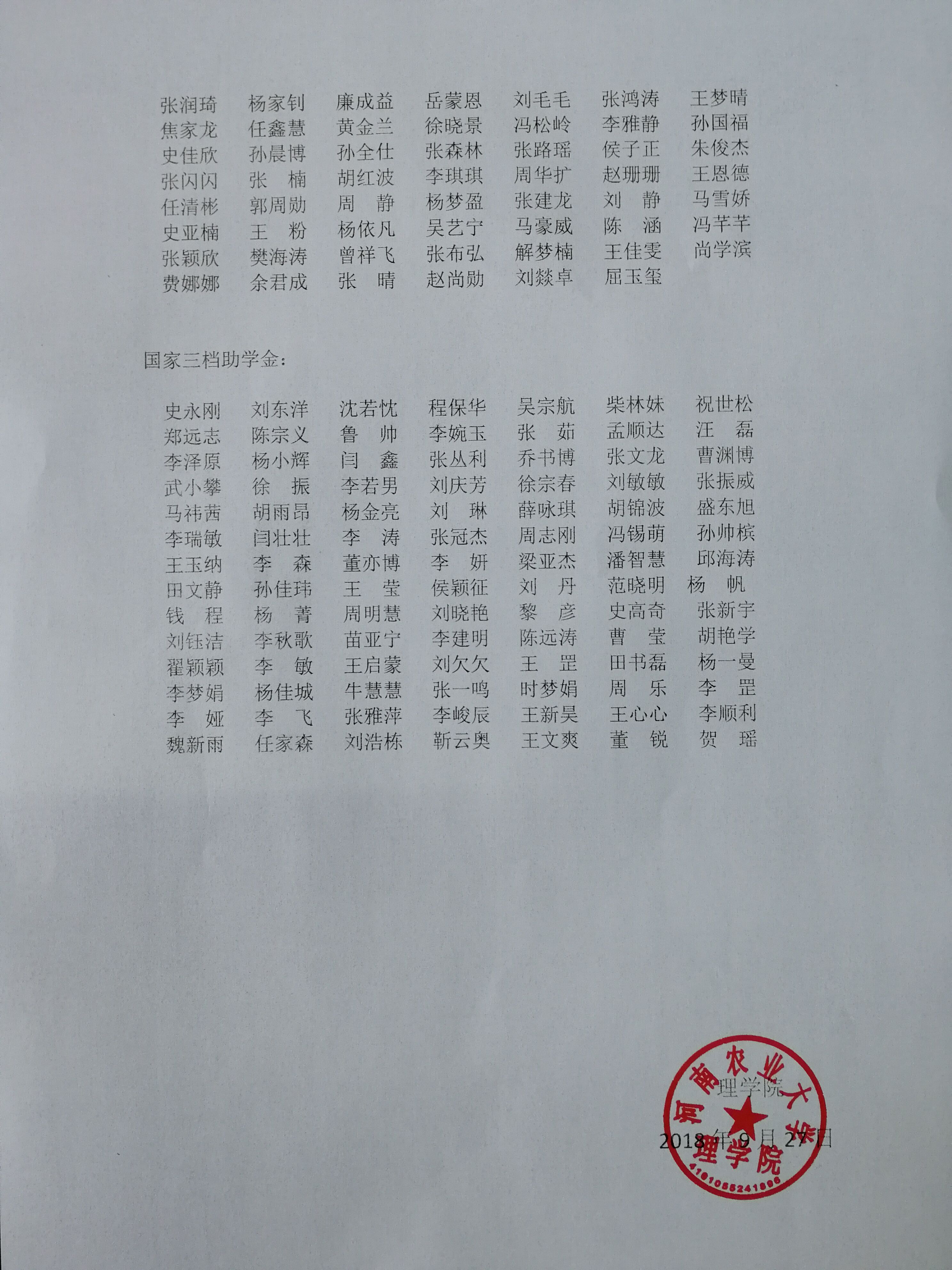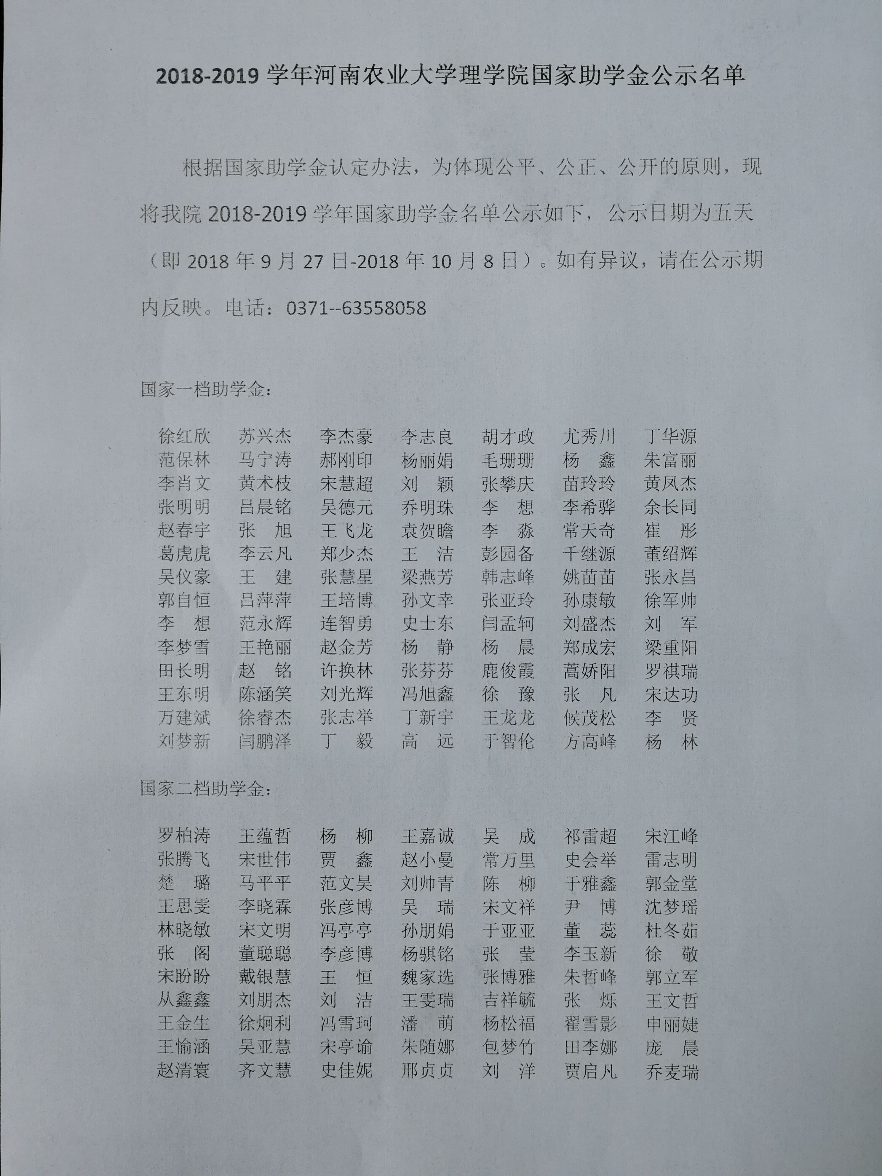 2018-2019学年起点中文网 国家助学金公示名单