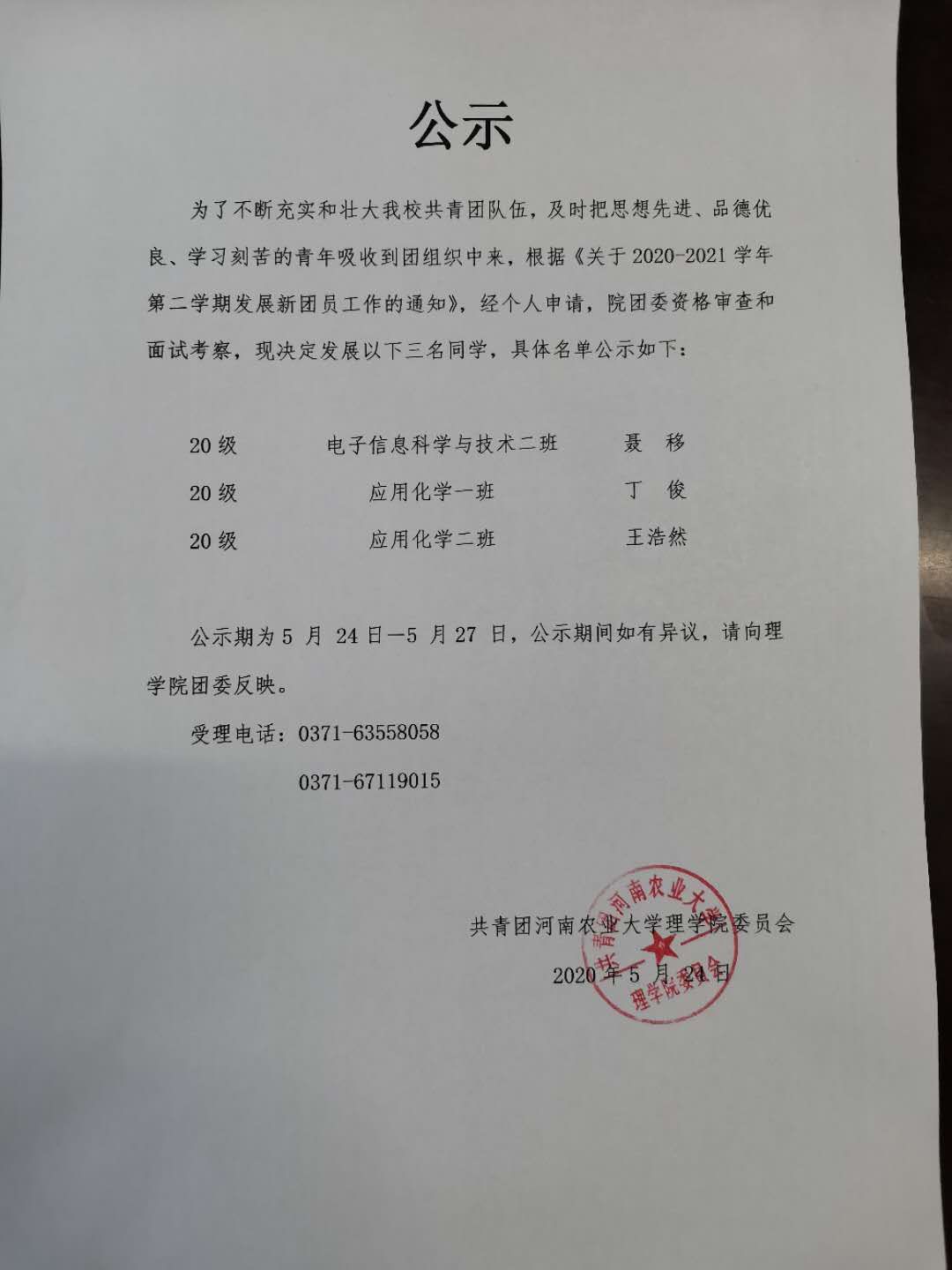 起点中文网 2020-2021学年第二学期发展团员公示名单