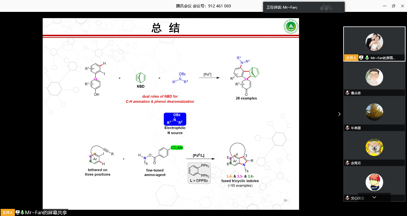 樊良鑫博士围绕过渡金属催化C-H键胺化向大家介绍了自己硕博期间的工作:
