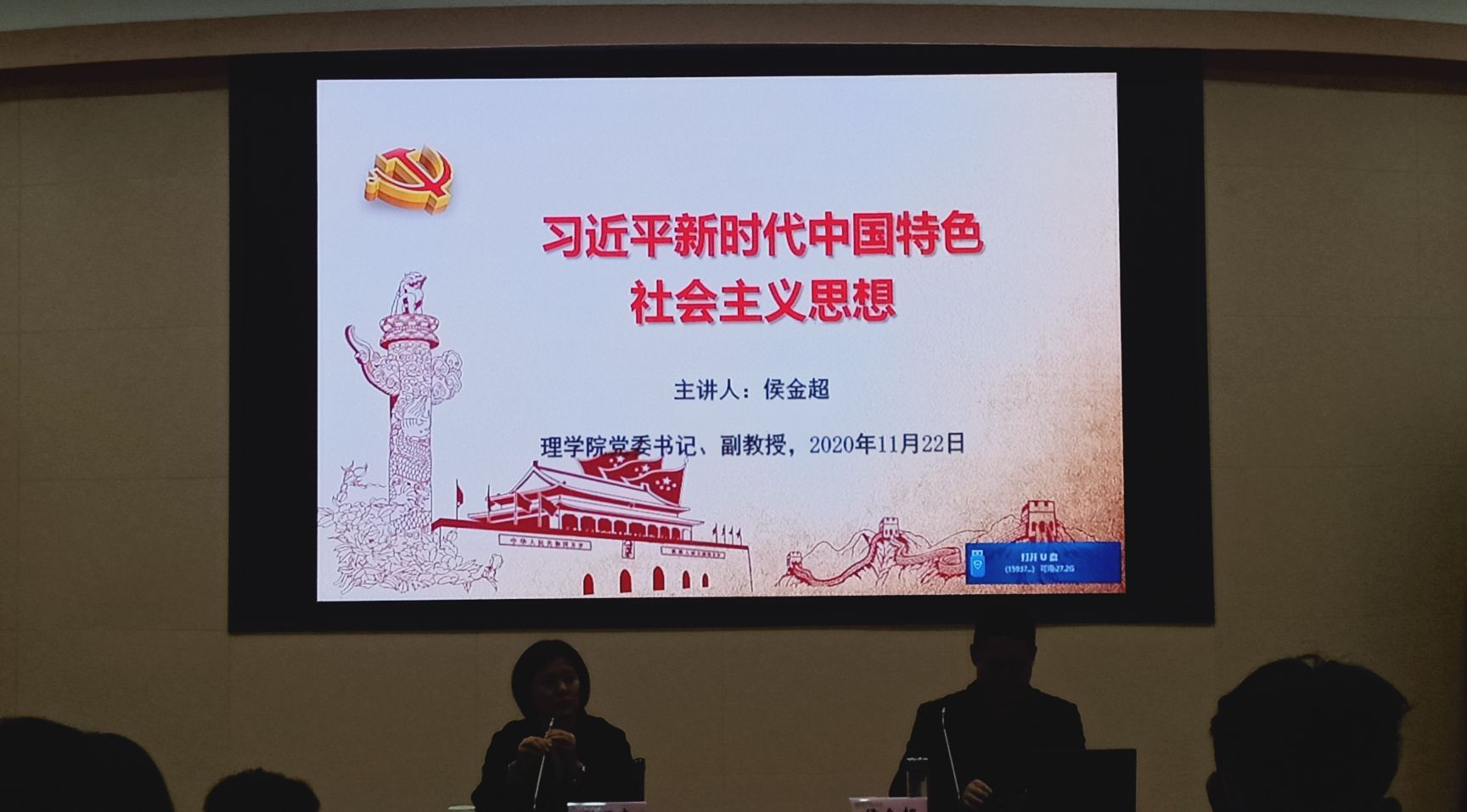 课上,侯金超从党的十九大主题、党的十九大主要成果、五年来国家的变革等方面,深入浅出向现场入党积极分子讲解了十九大报告主要内容。他从习近平新时代中国特色社会主义思想确立为党的指导思想的重大意义、三个性质、核心要义和丰富内涵等方面,引领现场积极分子全面学习了习近平新时代中国特色社会主义思想。接着,他通过视频让现场入党积极分子了解祖国了70年来的苦难与荣光及国外人士对十九大报告的看法。他希望所有入党积极分子能够在思想上向党组织靠拢,深入贯彻落实党的十九届五中全会精神和习近平新时代中国特色社会主义思想。