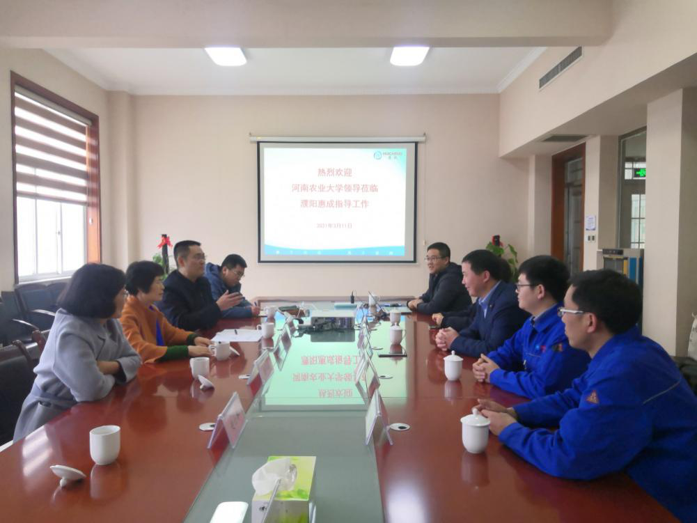 教授徐翠莲等一行前往濮阳惠成电子材料股份有限公司走访校友,商谈合作并签订大学生产教融合实习协议。我校2008级化学生物学专业校友、濮阳惠成电子材料股份有限公司总经理吴悲鸿等杰出校友热情接待,校企双方在参观企业研发、生产等环节后进行了深入座谈交流。