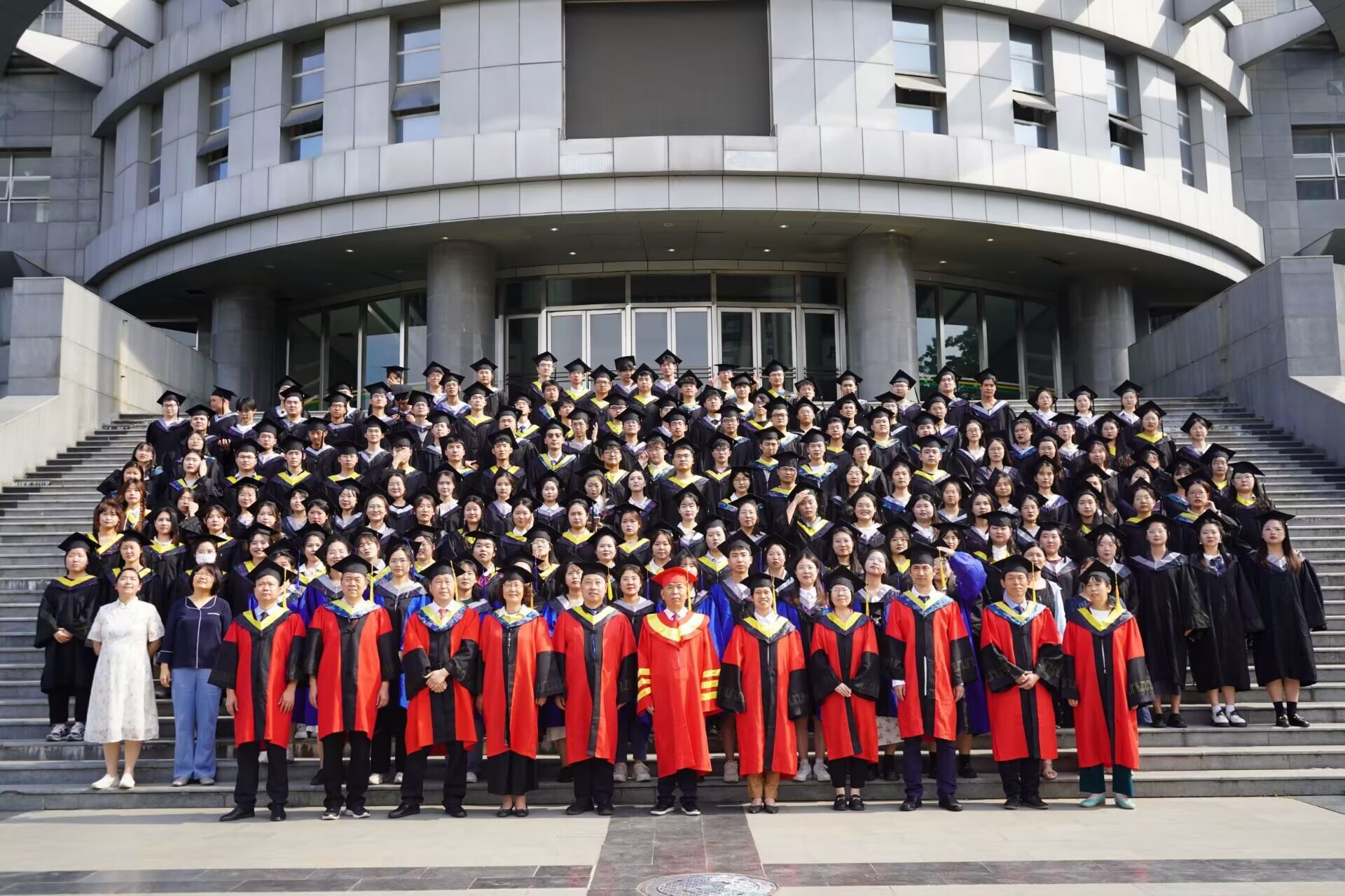 院学位委员会成员为2023届硕士、本科毕业生一一拨正流苏、颁发学位证书,并与学生合影留念。