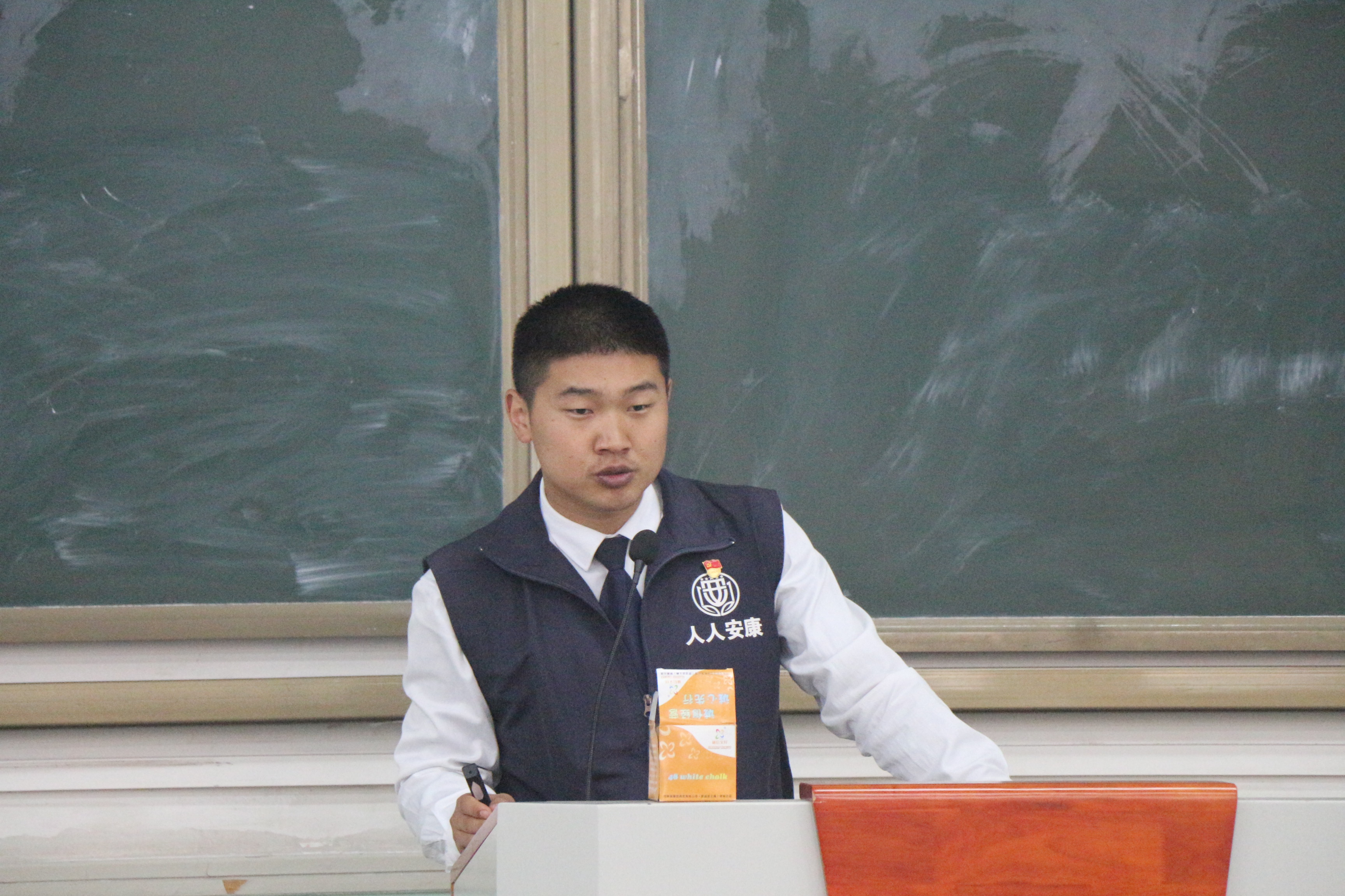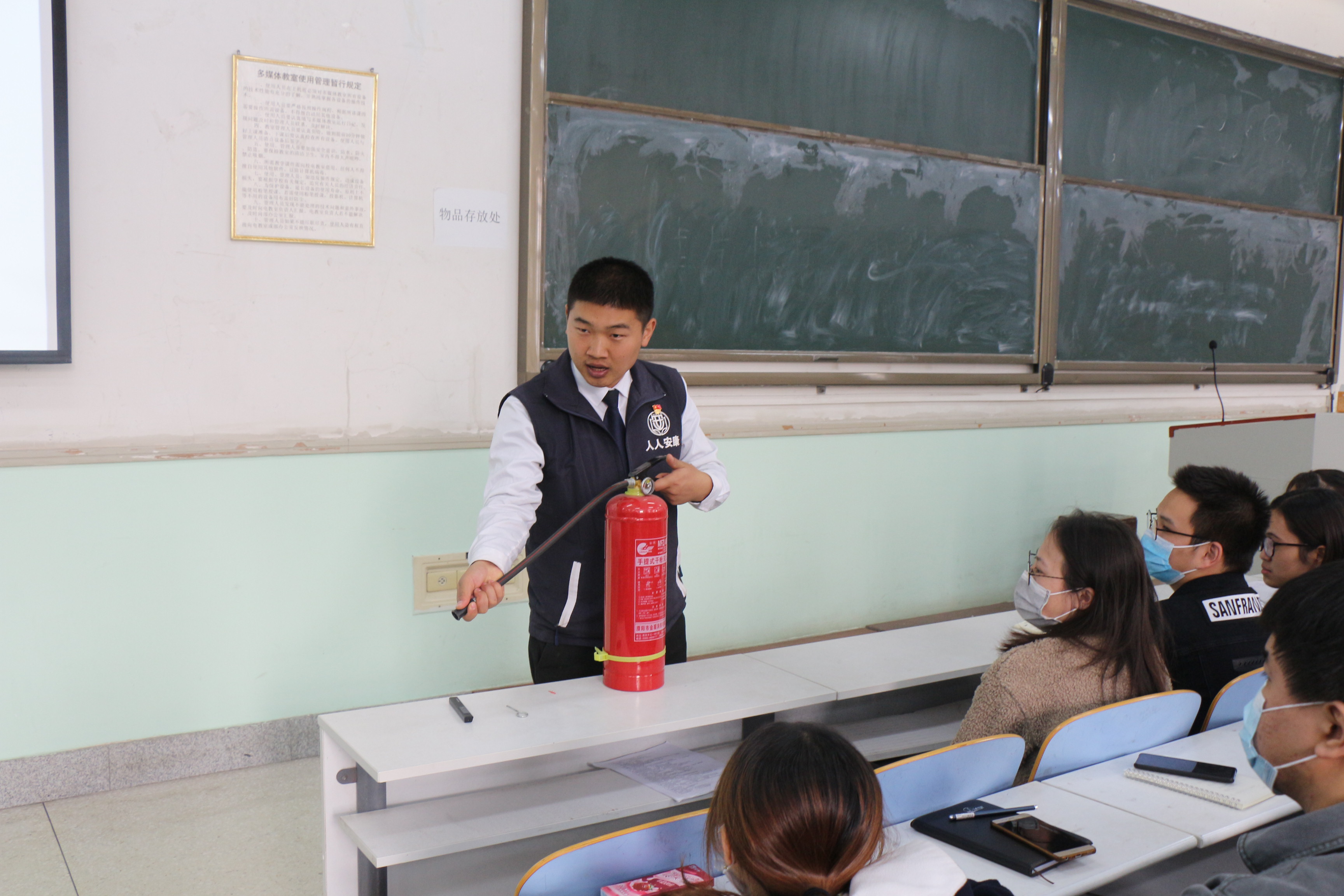 讲座伊始,武甲好以诙谐的语言和触目惊心的火灾视频给同学们展现了现实生活中存在的各种安全隐患,并向同学们科普了检查和整顿火灾隐患的四项消防安全能力。接着,他结合学生在校居住特点,着重讲述了宿舍违规使用大功率电器可能造成的严重后果,使同学们明白宿舍限电的必要性。随后,他通过情景模拟、剖析现实案例,直观而清楚地告诉现场同学遇到火灾正确的自救措施以及安全常识在关键时刻的巨大作用。最后,武甲好就如何使用干粉灭火器进行了现场演示,帮助同学们在了解灭火器原理的同时,也学会了如何使用灭火器。