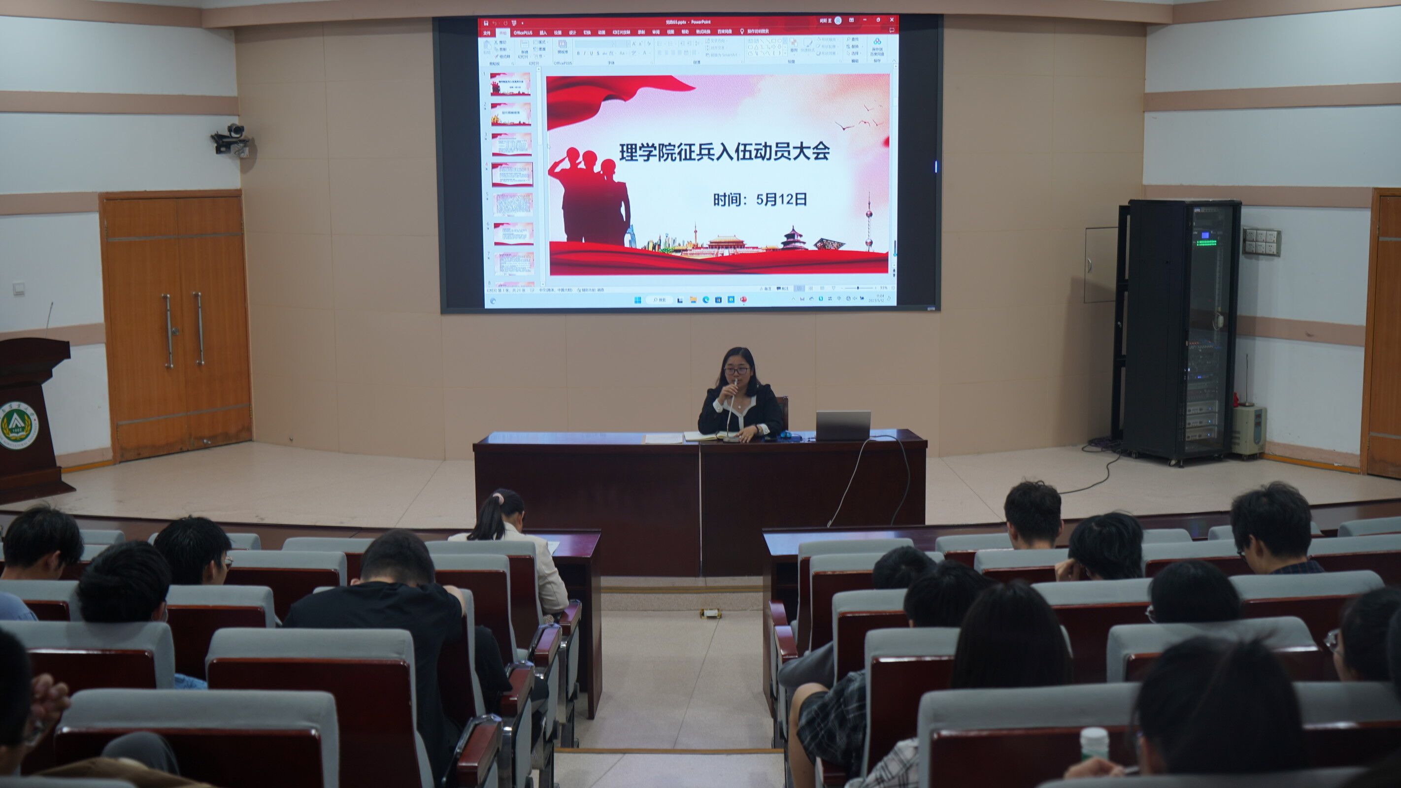 毕业生征兵入伍动员大会于文化路校区三百人报告厅举办。院团委书记邓瑛出席会议并作动员讲话,2023届全体毕业生参加会议。